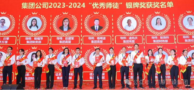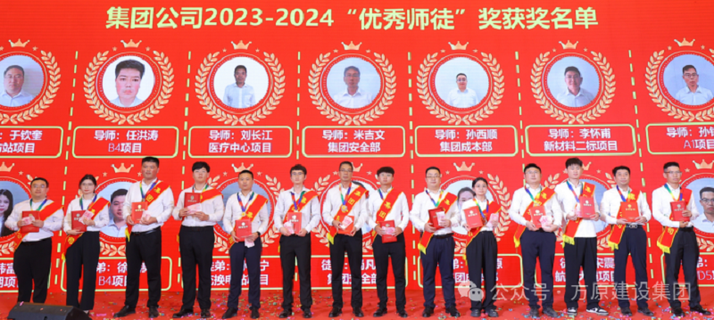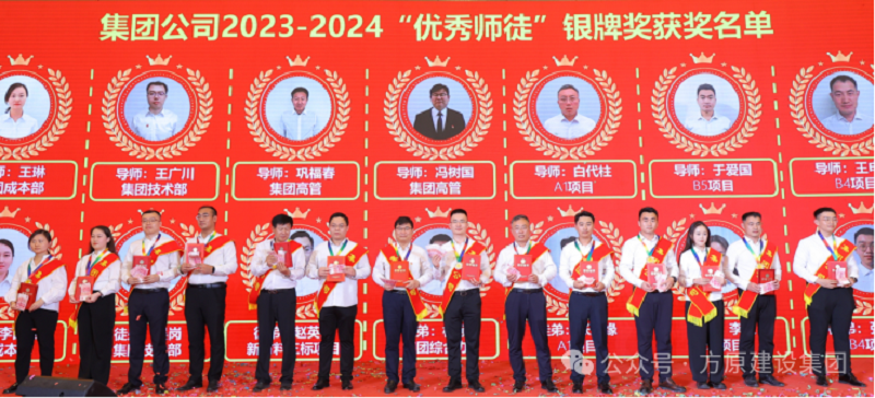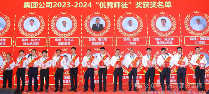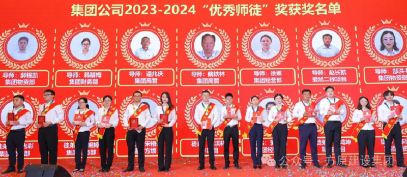 2024年8月3日,集团公司2024年上半年工作总结暨表彰兑现大会,对人才培养与孵化工作进行了总结,高度评价了2023-2024人才培养和孵化工作取得的新成效,表彰了为集团人才培养作出突出贡献的单位,7对师徒被评选为“2023导师带徒”金奖,14对师徒被评选为“2023导师带徒”银奖,21对师徒被评选为“2023导师带徒”优秀奖。